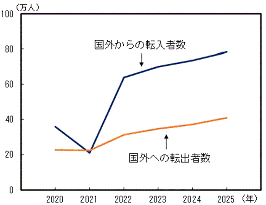 - 国外からの転入者数は78万2165人となり、前年に比べ6.3%の増加