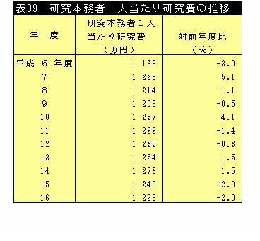 平成16年度の研究者1人当たり研究費は4090万円で,前年度に比べ1.2%増となっている。