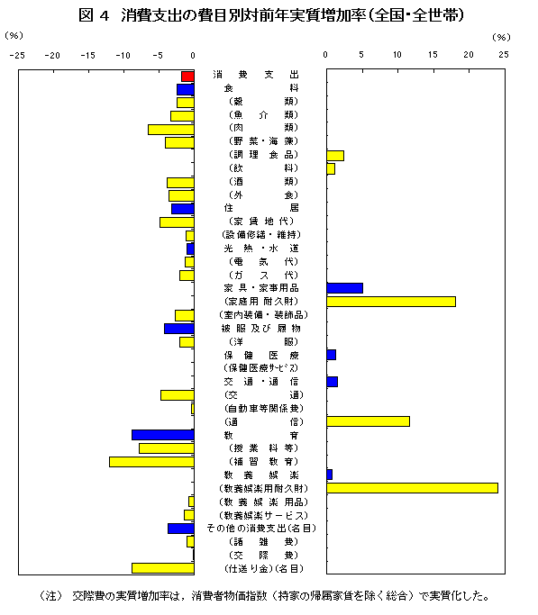 (2)家電製品やIT関連支出の増加などにより家具・家事用品,交通・通信,教養娯楽などが実質増加