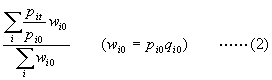 where, denominator and numerator are total expenditures for all items, at the base and the observation period, respectively, assuming that consumers purchase the same amount of commodities both at the base period and the observation period. In this formula, quantities are fixed at the base period.