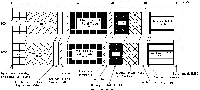 Fig. I-5 Composition ratio of Persons Engaged by Major Industrial Group (2001, 2006)