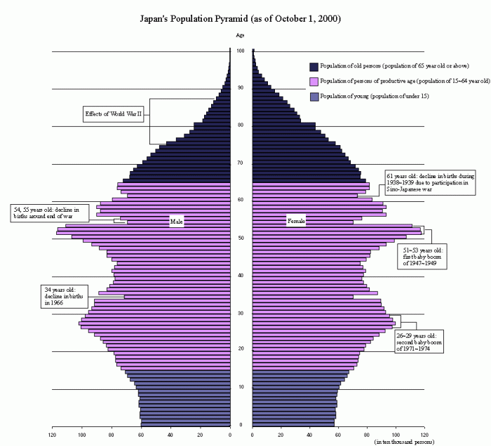 First basic statistical results: Summary of results 1. Japan's population pyramid 1 Total Population ->
